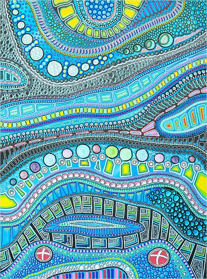 As my health has worsened, it has become harder to find the words to describe my work. I can say that I’ve always loved colour — the more, the better. Painting with black, white, and grey has always made me a bit uneasy. I grew up in communist Poland, which was a terribly grey, drab, and gloomy place. Colour became my escape from the dreary reality of the streets.